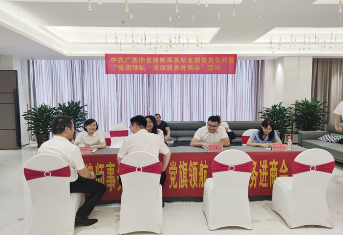 | 中共广西中名律师事务所支部委员会牵头中名律师事务所开展“党旗领航·法律服务进商会”活动 |